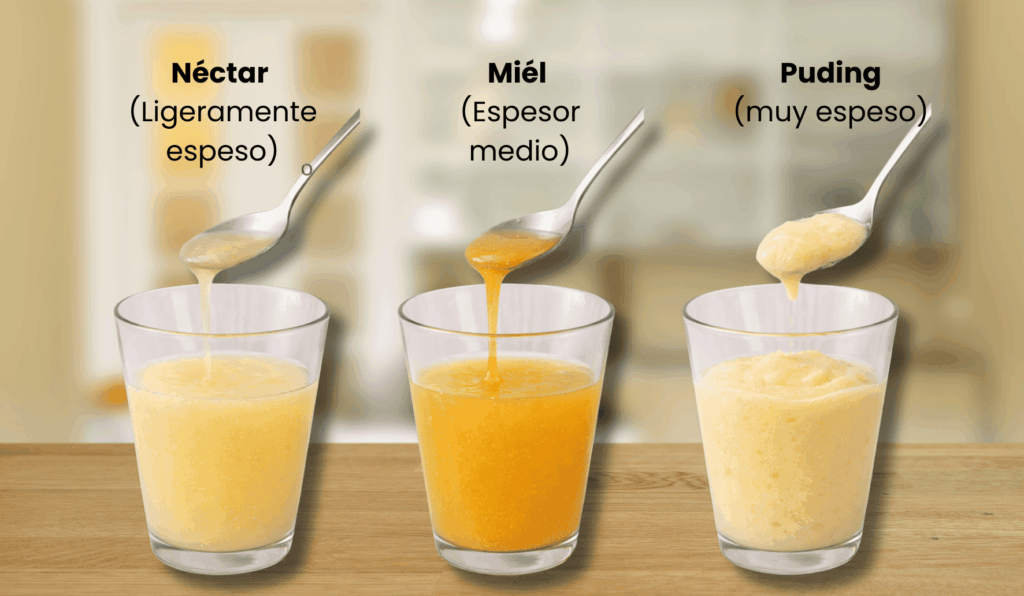 - La textura tipo pudin es la más espesa y suele tomarse con cuchara, útil en personas con mayores dificultades para tragar líquidos.